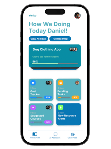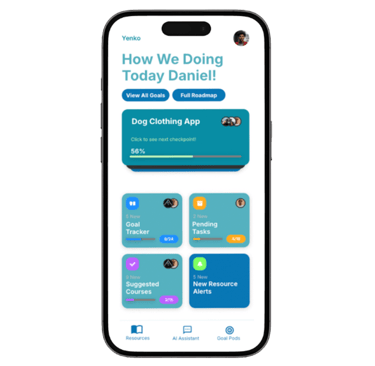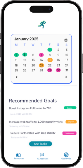 Our Goal Pod feature generates tasks relevant to your goals and the stage you're at with your idea.