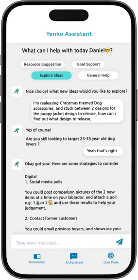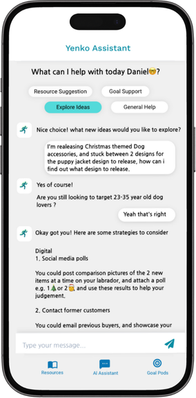 Using the information given in your short assessment. Our Yenko assistant is able to provide tailored support with for your idea and unique considerations in mind.